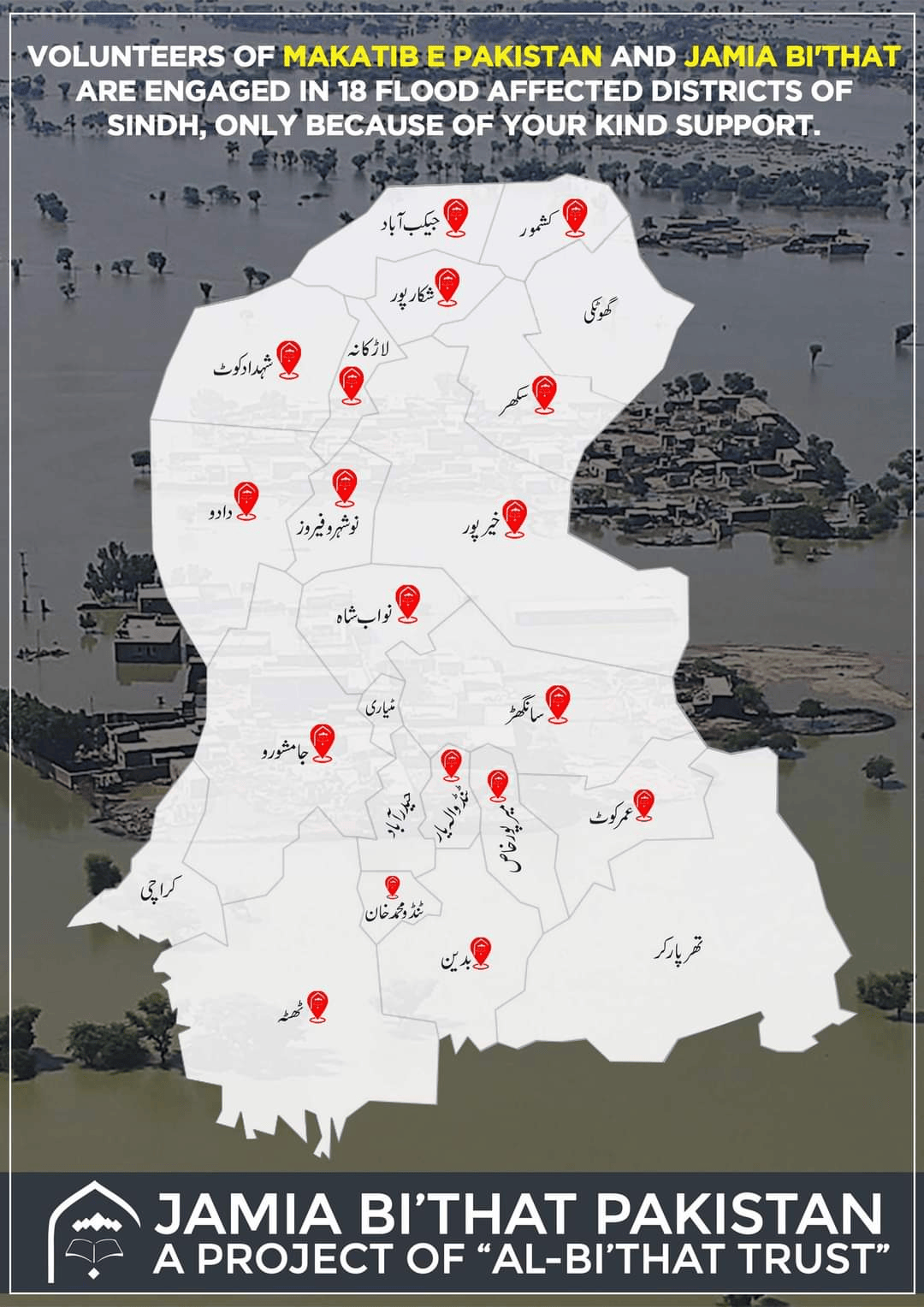 2. Makatib Pakistan teams, along with our district-level liaisons, reached the flood-affected areas, providing significant relief efforts, particularly in the regions hardest hit around our offices.